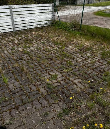 Teostasime väga sammaldunud kivisillutise põhjaliku puhastuse, eemaldades sambla ja sügavale pinnastruktuuri kogunenud mustuse ligi 100 °C kuumaveega. Kõrge temperatuur võimaldas hävitada tõhusalt orgaanilise saaste ning tagas väga põhjaliku puhastustulemuse ka kõige probleemsemates kohtades.