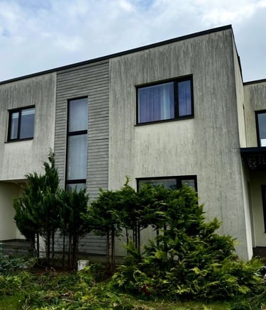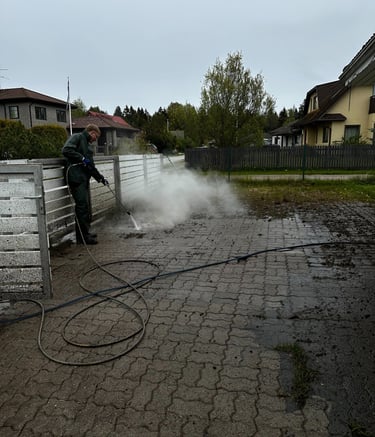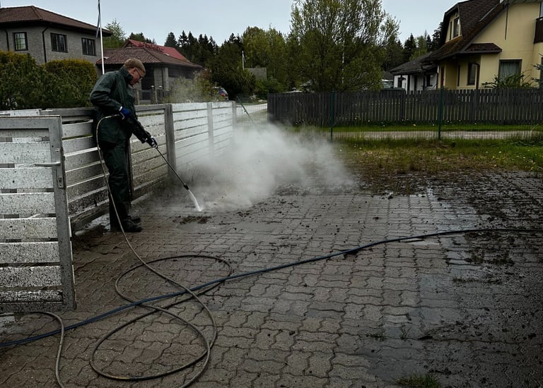 Teostasime kliendile põhjaliku krohvfassaadi kuumaveepesu, kasutades spetsiaalselt selle töö jaoks sobivat EXPRESS GUARD puhastuskeemiat ning pinnale täpselt kohandatud töösurvet. Enne tööde alustamist hindasime fassaadi seisukorda ja määrasime sobiva pesumeetodi, et tagada mustuse, bioloogilise saaste ning ilmastikust tingitud ladestuste tõhus eemaldamine krohvpinda kahjustamata.