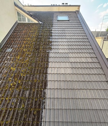 Teostasime raskesti ligipääsetava kolmekorruselise maja katusepesu, kasutades tööde teostamiseks 27 meetri kõrgusega korvtõstukit. Enne pesu töötlesime katusepinna spetsiaalse puhastuskeemiaga, et eemaldada kivipinnale kinnitunud samblik, mustus ja muu bioloogiline saaste võimalikult tõhusalt.